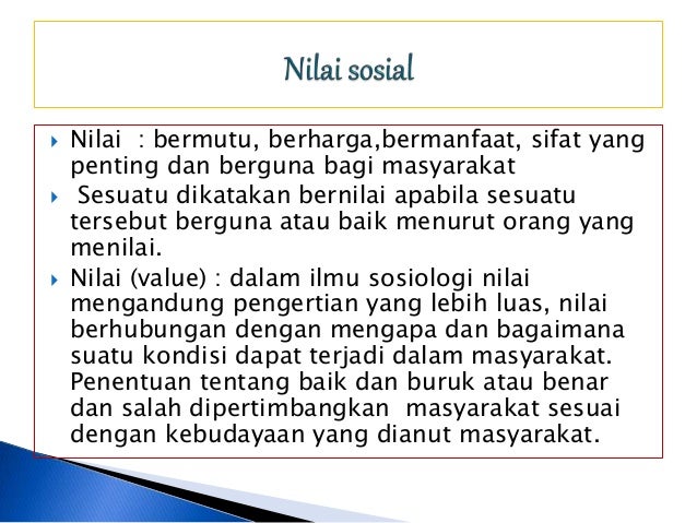 Pengertian Nilai Sosial dan Norma Sosial di Masyarakat, Macam-macam, Ciri-ciri, Klasifikasi, Contoh Antara nilai dan norma tersebut terwujud dalam kebudayaan yang dimiliki oleh masyarakat tertentu.